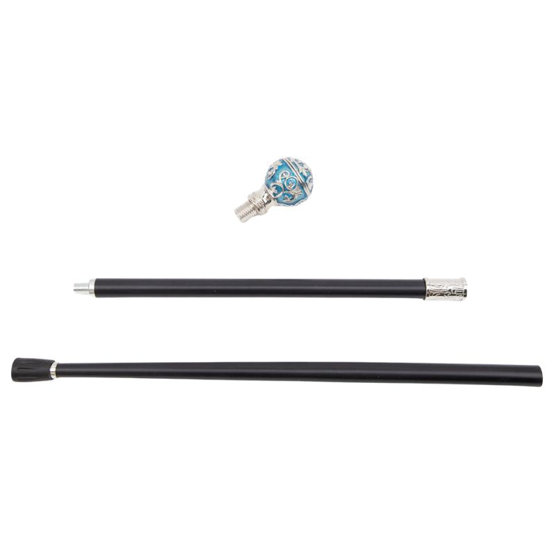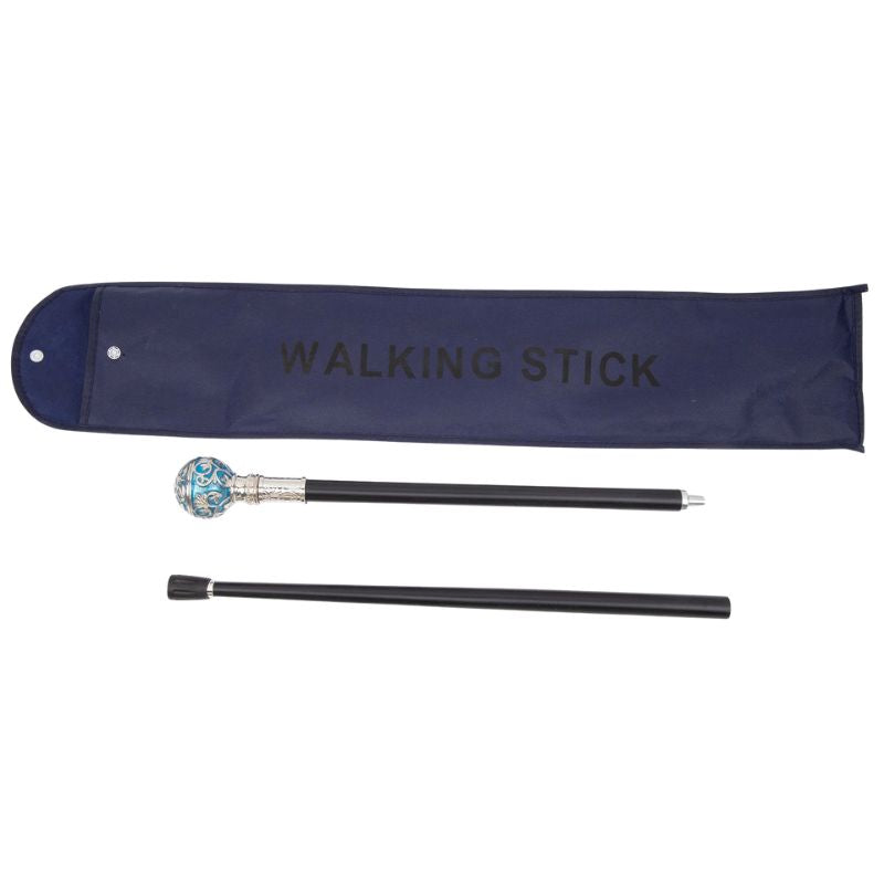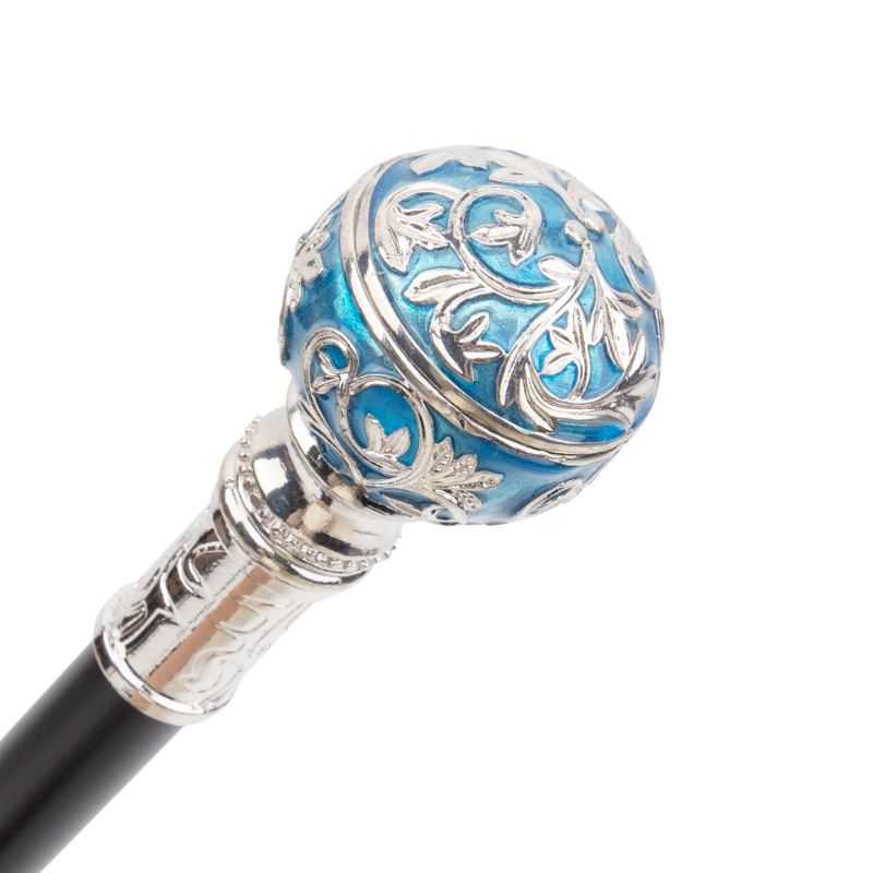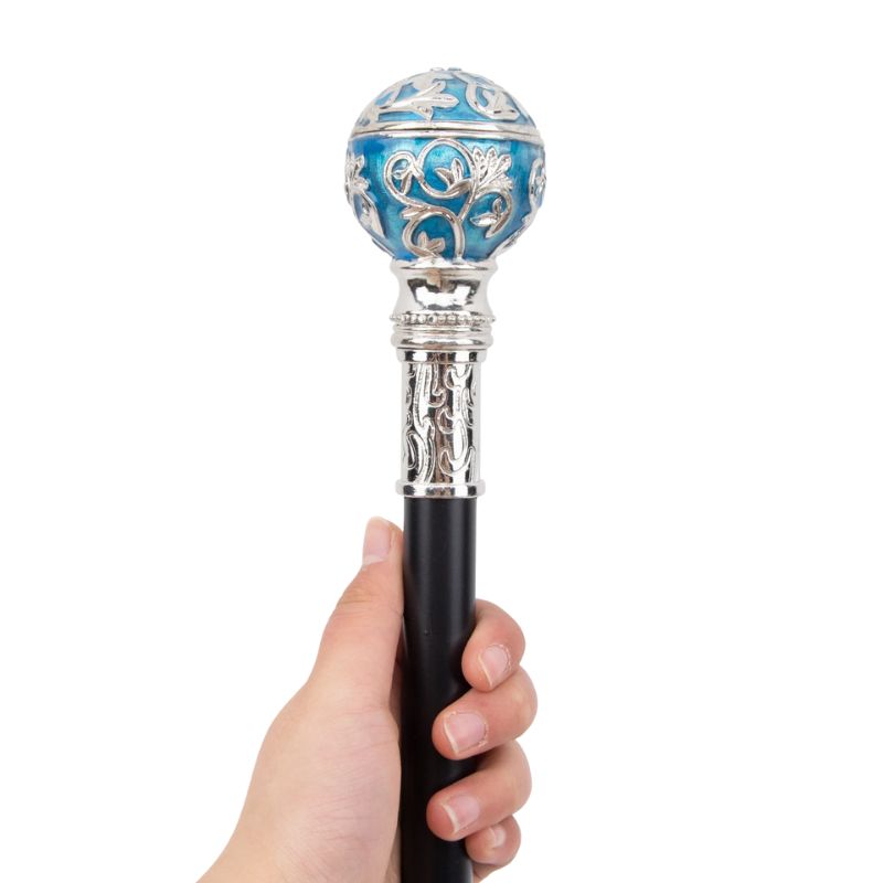 Avec son pommeau sphérique sculpté dans une teinte bleu métallisé rehaussée d’arabesques argentées, cette canne de marche bleue est une véritable pièce de caractère. Elle attire le regard, sublime une silhouette et impose une présence élégante, presque royale.