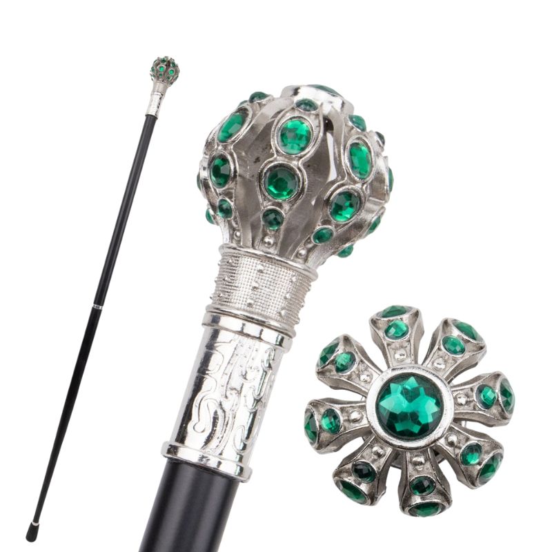 Voici une canne de marche au pommeau vert aussi fascinante que théâtrale. Ornée de pierres vert émeraude serties dans un pommeau sculpté en métal, elle impose par son éclat et sa présence. Une pièce rare, entre pouvoir et fantaisie.