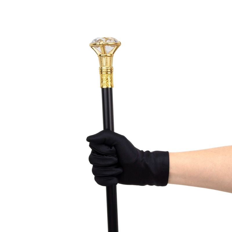 Avec sa tête ornée d’un faux diamant taillé façon cristal, cette canne dorée ne passe jamais inaperçue. C’est une pièce lumineuse, pensée pour celles et ceux qui aiment briller sans jamais tomber dans l’excès. Un mélange de théâtralité et de raffinement, pour affirmer son style avec panache.