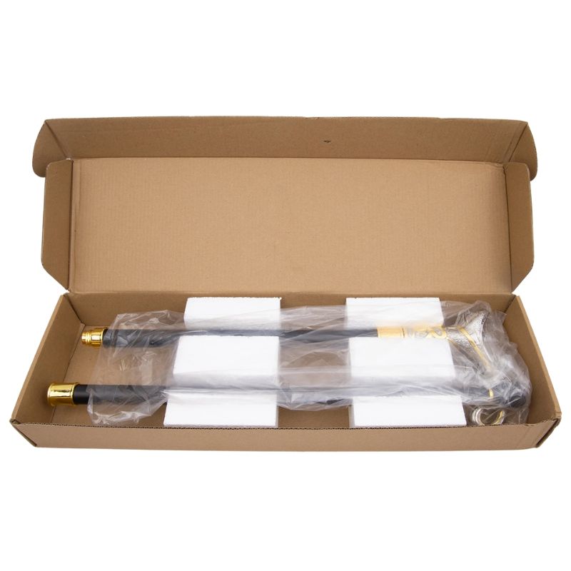 Sous cette poignée stylisée se cache une lame décorative (non affûtée), que vous pouvez facilement dévisser et aiguiser si souhaité. Le contraste entre son fût noir sobre et les détails dorés en fait une pièce unique, à la fois vintage et moderne. Elle est livrée dans un coffret soigné, parfaite à offrir ou à collectionner.