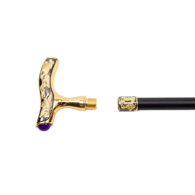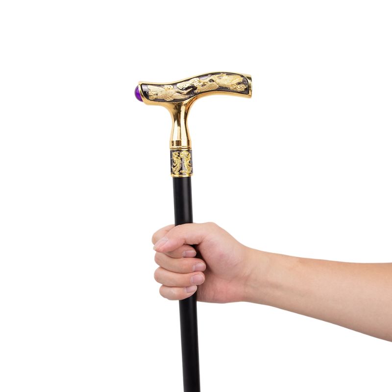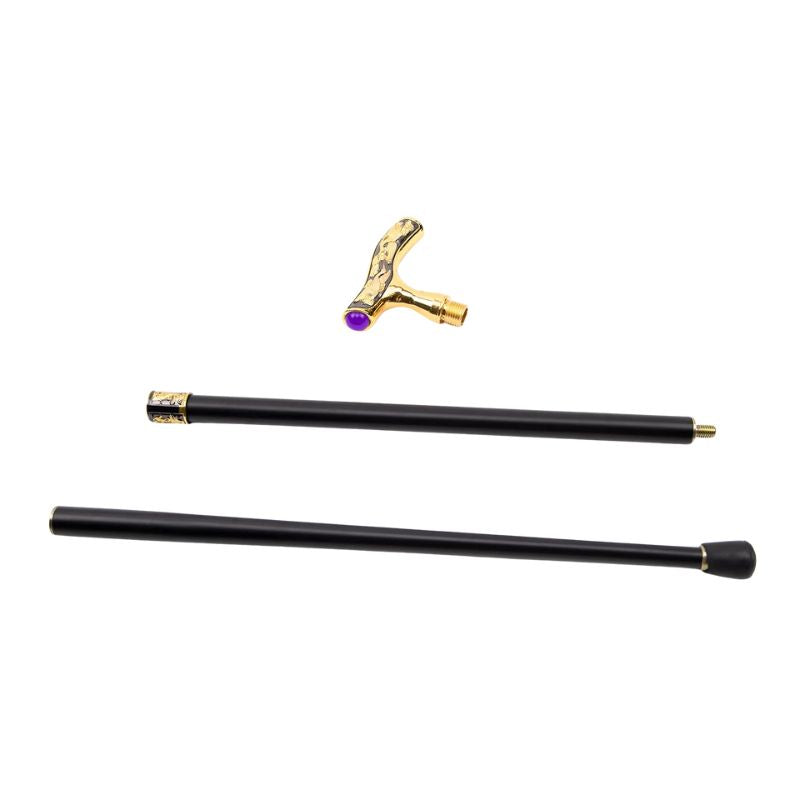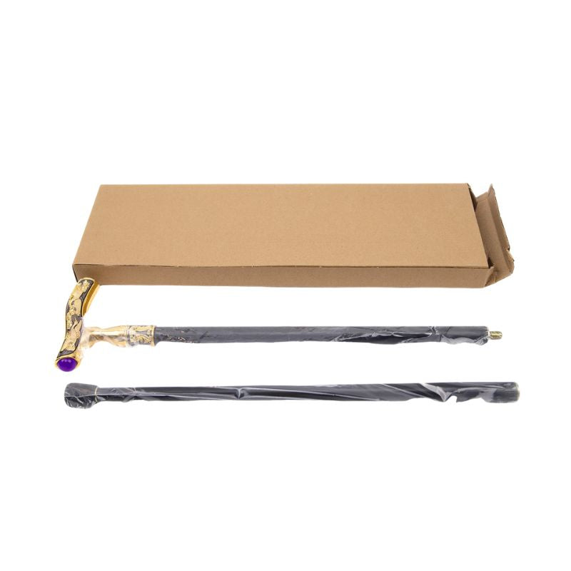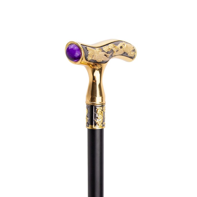 Cette canne luxueuse attire tous les regards par son manche doré finement sculpté et surmonté d’une pierre violette évoquant les symboles impériaux. Elle combine richesse des détails, prestance et esprit collection, pour ceux qui aiment se démarquer avec élégance.